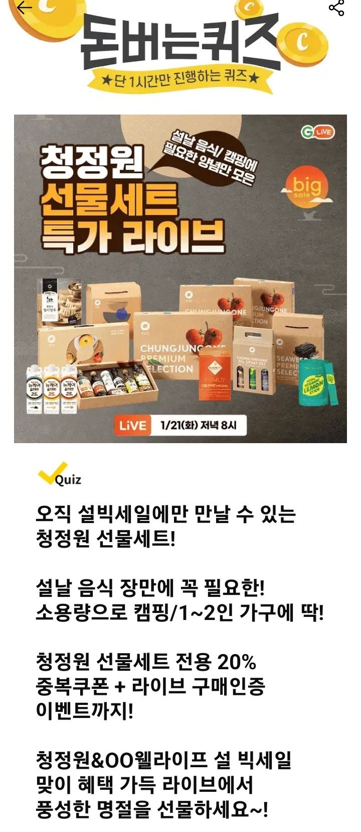 청정원&OO웰라이프 설 빅세일 맞이 혜택 가득 라이브에서