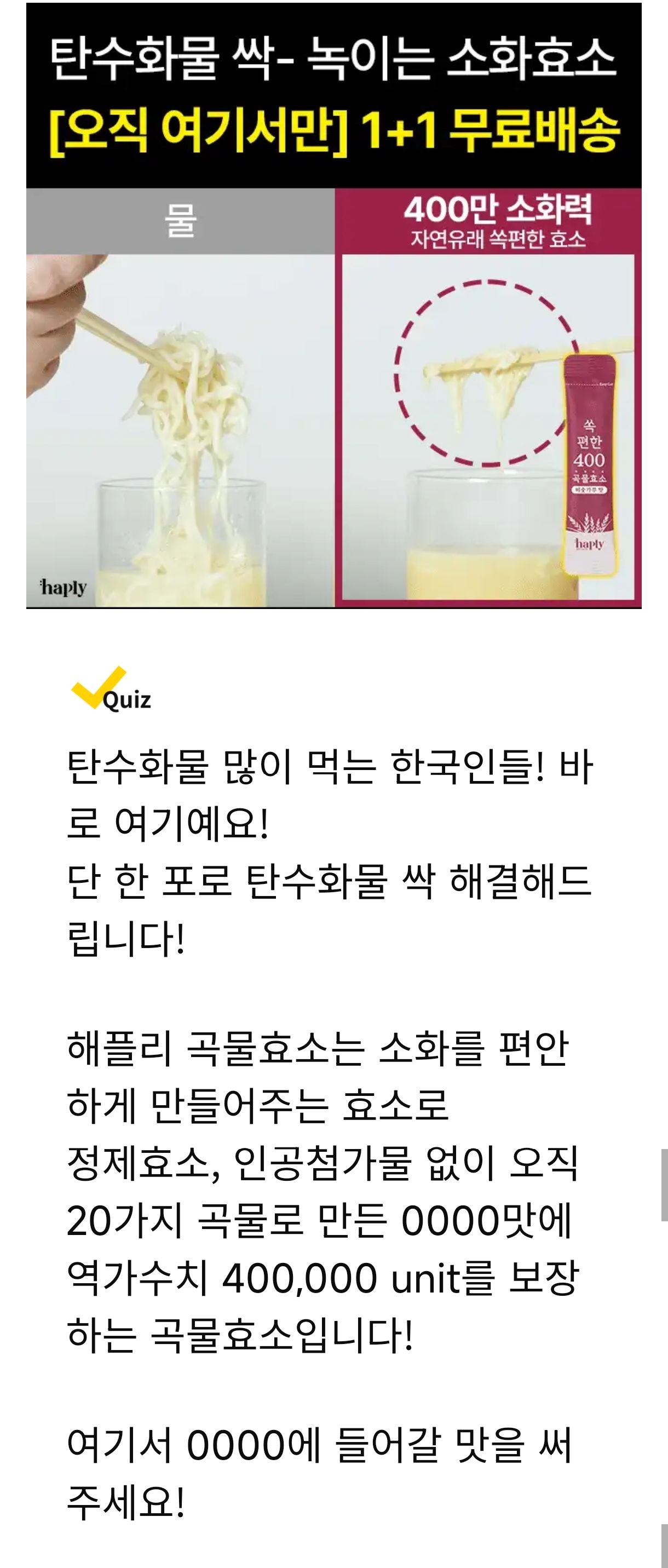 한 포로 녹이는 탄수화물 해플리 쏙 편한 곡물 효소