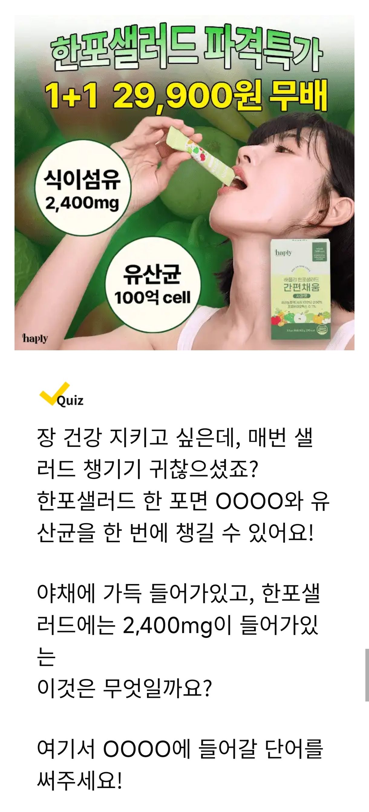 한포샐러드 한 포면 OOOO와 유산균을 한 번에