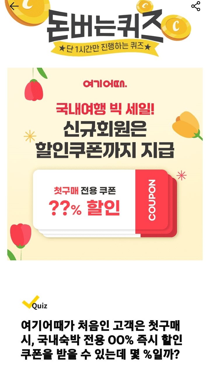 국내숙박 전용 ㅇㅇ% 즉시 할인 쿠폰을 받을 수 있는데 몇 %일까?